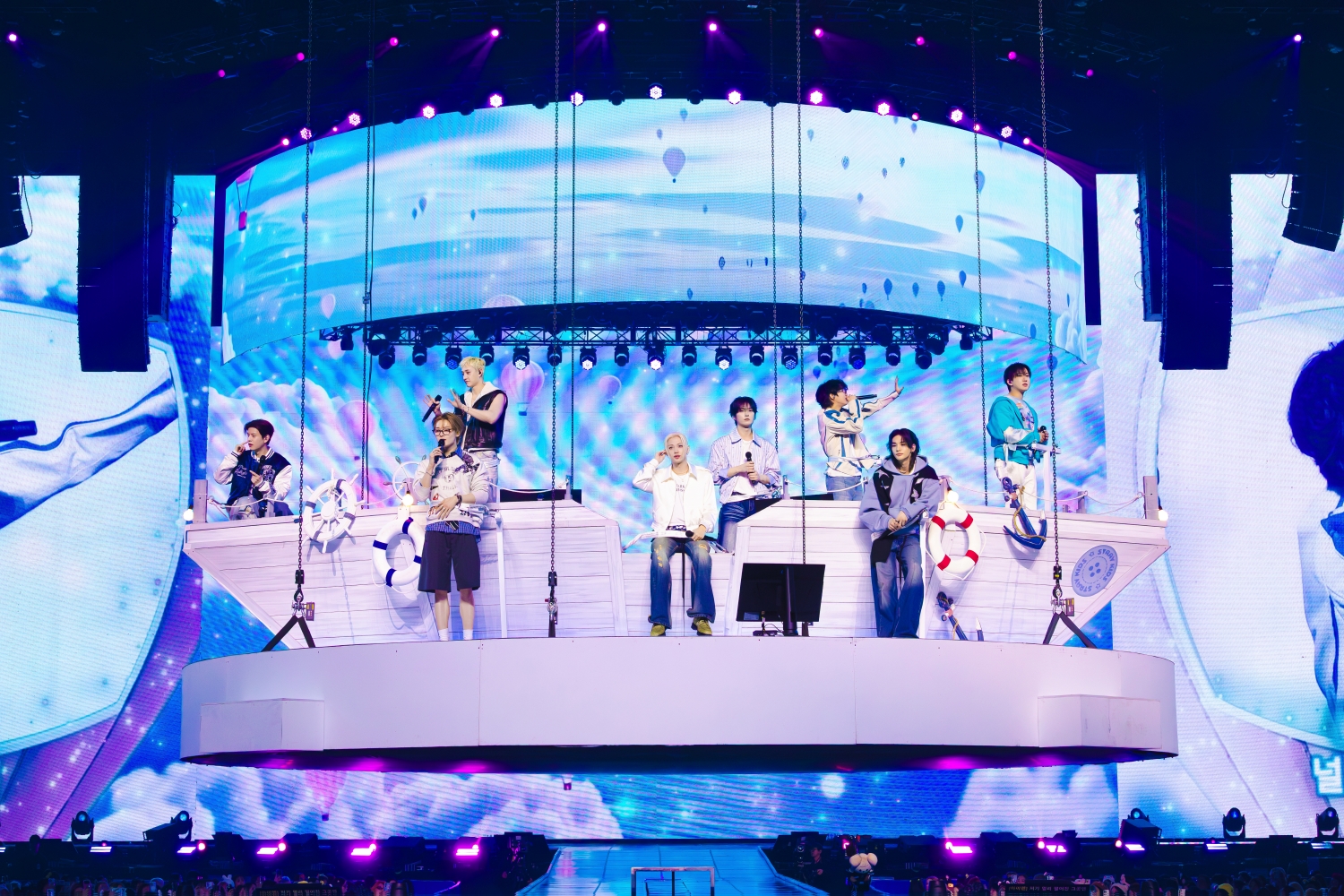 2026년 3월 25일 데뷔 8주년을 맞이해 스테이에게 선물한 신곡 '별, 빛 (STAY)' 최초 공개 무대는 단연 하이라이트였다. 여덟 멤버는 배 모형 리프트 장치를 타고 공연장 위로 날아올라 2, 3층 관객들과 더욱 가까이 눈을 맞췄고 스테이는 형형색색 응원봉을 흔들며 공연장을 아름다운 별빛처럼 수놓았다.