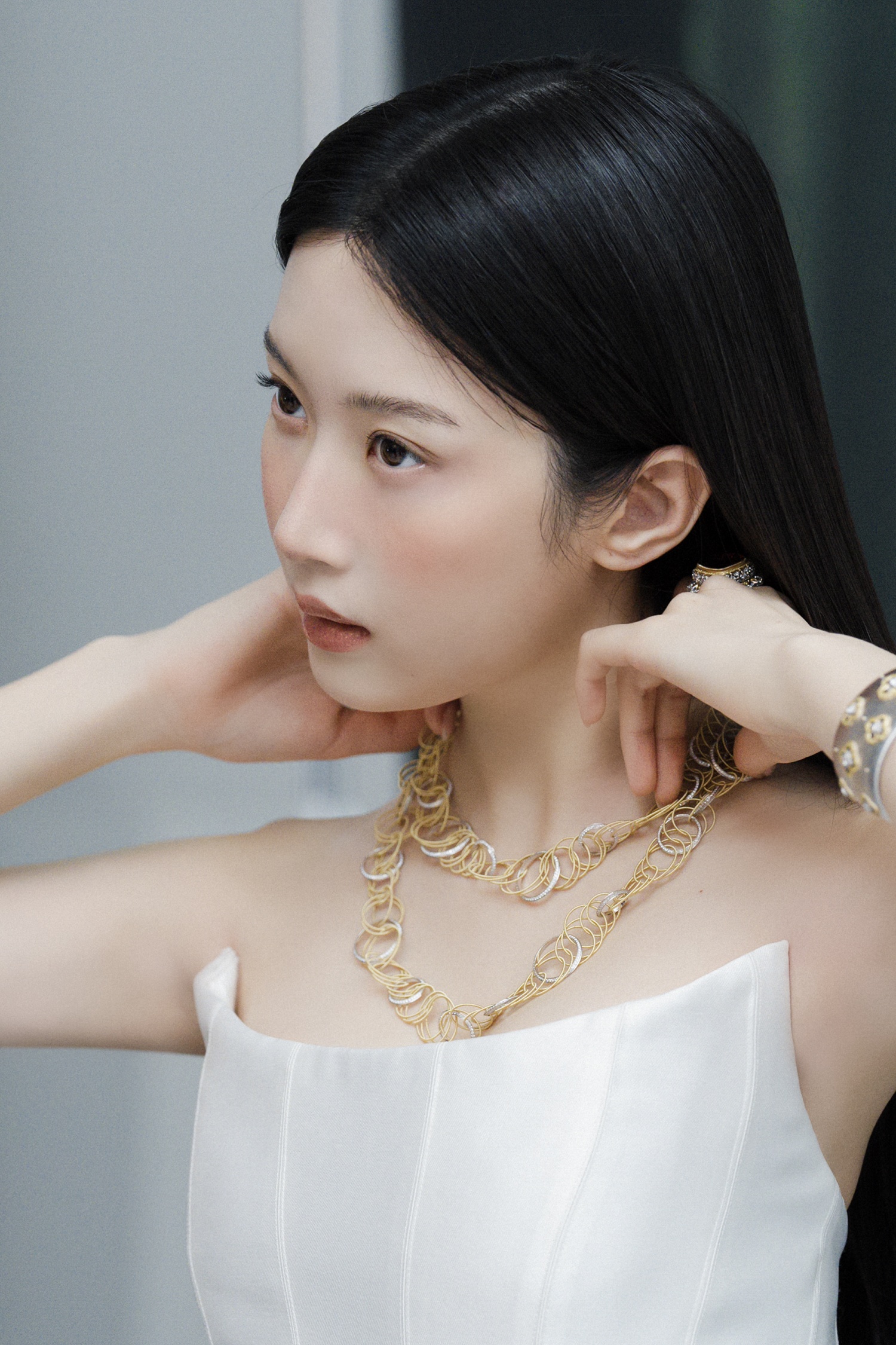 무엇보다 문가영의 섬세한 표현력이 돋보였다. 촉촉하게 빛나는 눈빛과 절제된 손끝 디테일은 주얼리의 우아한 존재감을 한층 높였으며, 컷마다 결을 달리하는 깊이 있는 시선 처리는 화보에 한 편의 서사를 부여했다. 생동감 넘치는 싱그러움부터 고혹적인 아우라까지 자유자재로 넘나드는 그의 감각적인 표현력으로 A컷 못지않은 완벽한 비하인드 컷을 탄생시켰다.