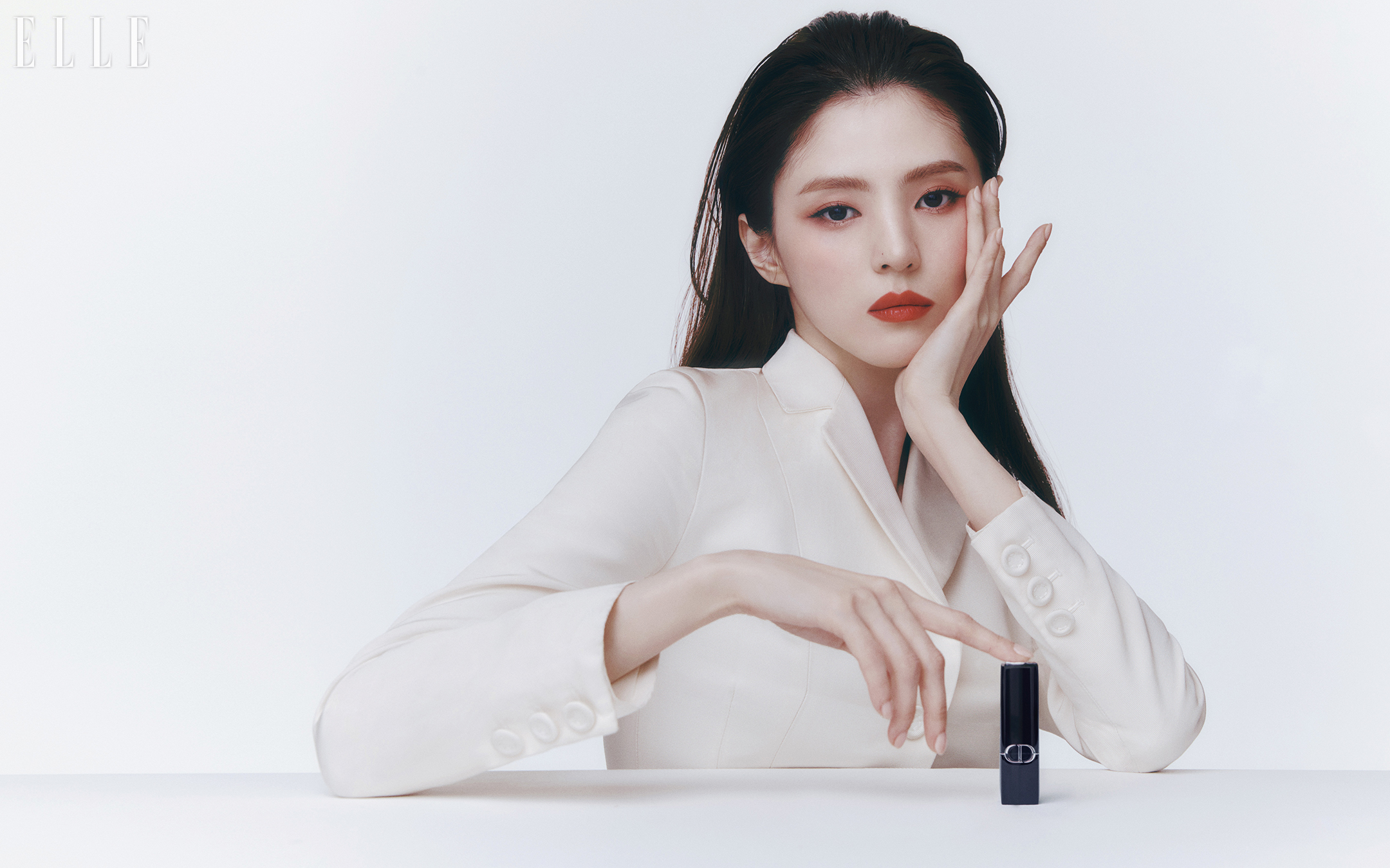 화보 속 눈을 뗄 수 없는 한소희의 우아한 입술은 1월에 새롭게 출시한 ‘2024 NEW 루즈 디올’로 완성한 것. 디올 뷰티의 아이코닉한 제품으로 디올 메이크업 크리에이티브 & 이미지 디렉터 피터 필립스가 개발부터 제작까지 참여해 새롭게 리뉴얼됐다. 작약, 석류꽃 추출물, 백년초 꽃 추출물과 히비스커스 꽃 추출물 등이 입술을 촉촉하게 가꿔주고, 선명하게 지속되는 컬러와 편안함을 선사한다. 꾸뛰르 액세서리를 연상시키는 슬림하고 우아해진 마그네틱 케이스에 CD 밴드 디자인, 클래식 실버 까나쥬 모티프가 더해져 감각적인 오브제로서의 매력도 소장가치를 더하는 제품.