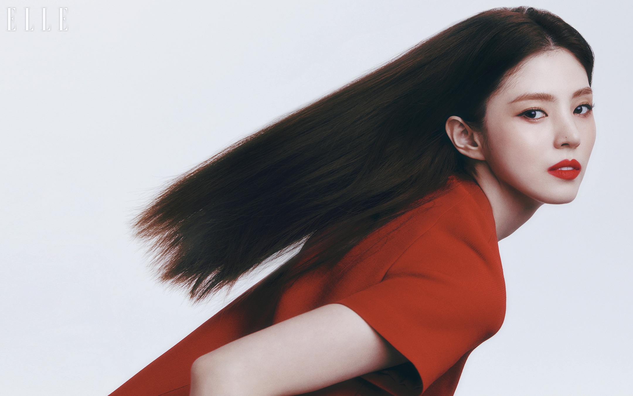 배우 한소희의 뷰티 화보가 <엘르> 2월호에 공개됐다.