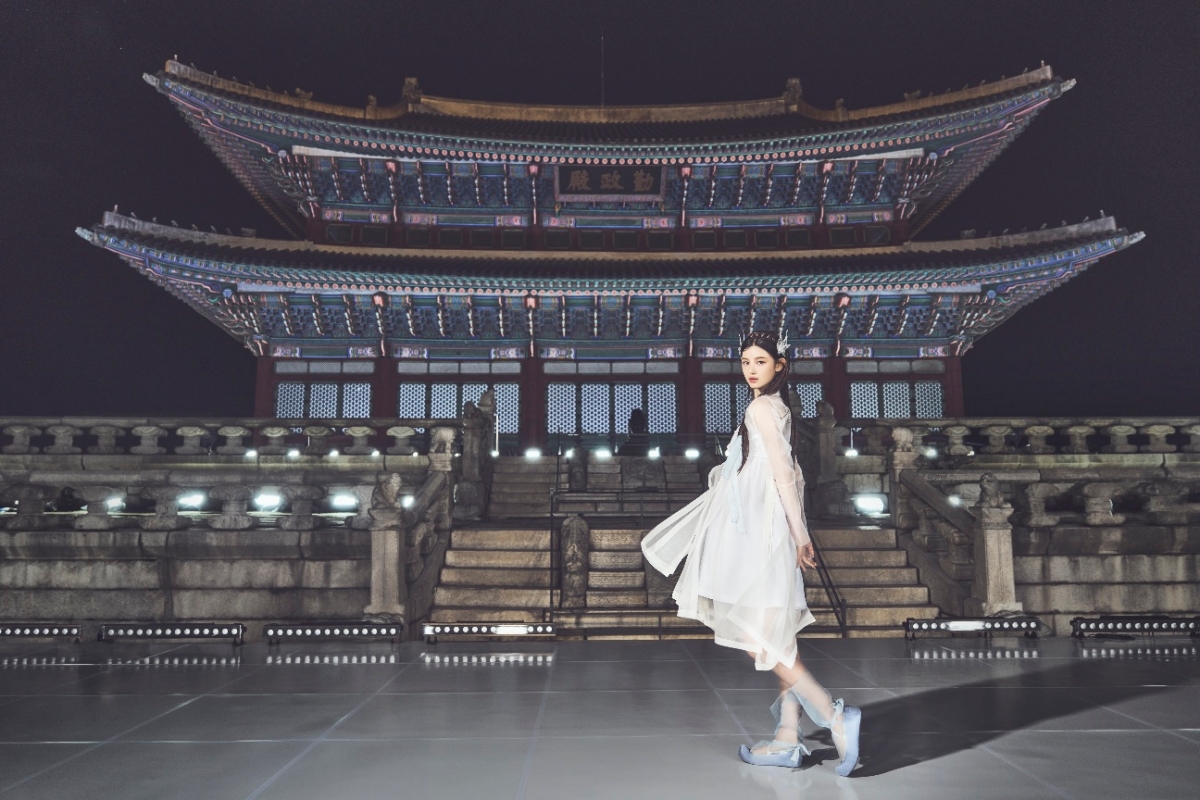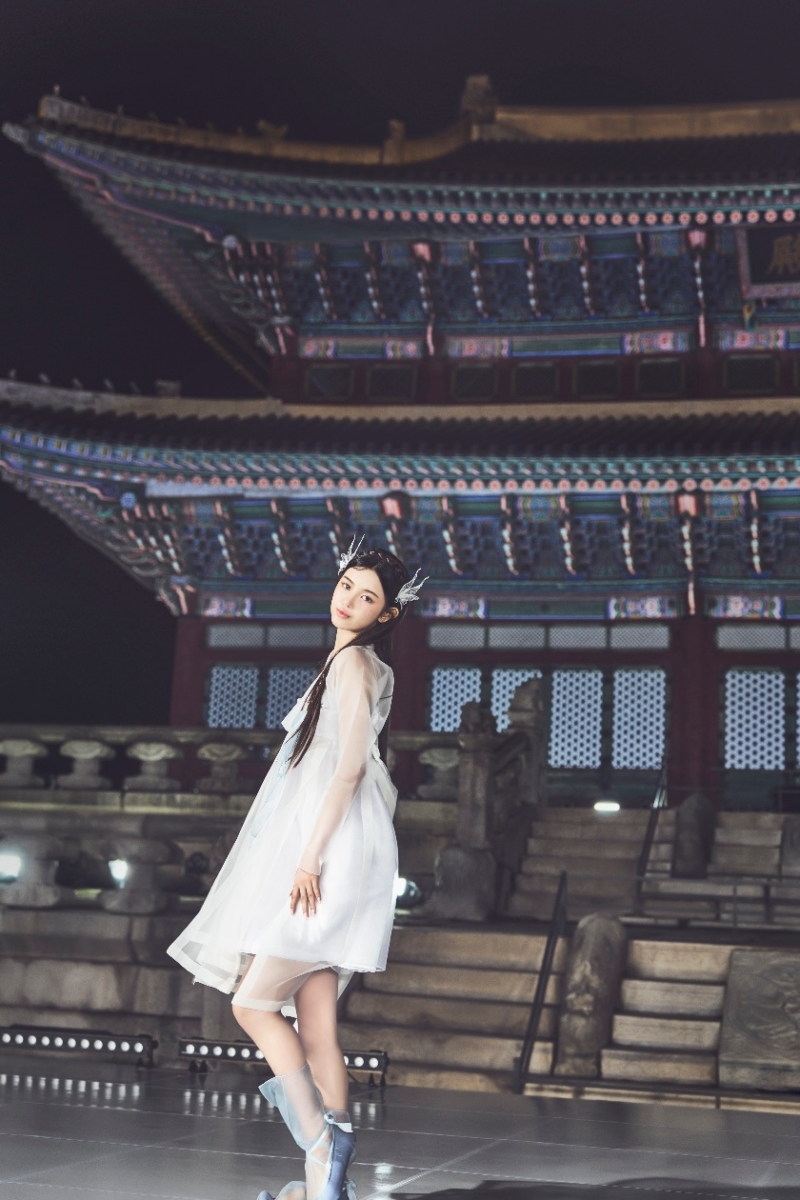 먼저 포스터에는 웅장하고도 아름다운 근정전이 메인으로 담겨 있어 벅찬 감동을 선사한다. 이어 공개된 스틸컷 속 다니엘은 하늘하늘한 순백의 한복 의상을 입고 있다. 밤을 배경으로 곱게 빛나는 근정전의 모습과 다니엘의 단아한 매력이 어우러져 한국의 미를 배가한다.
