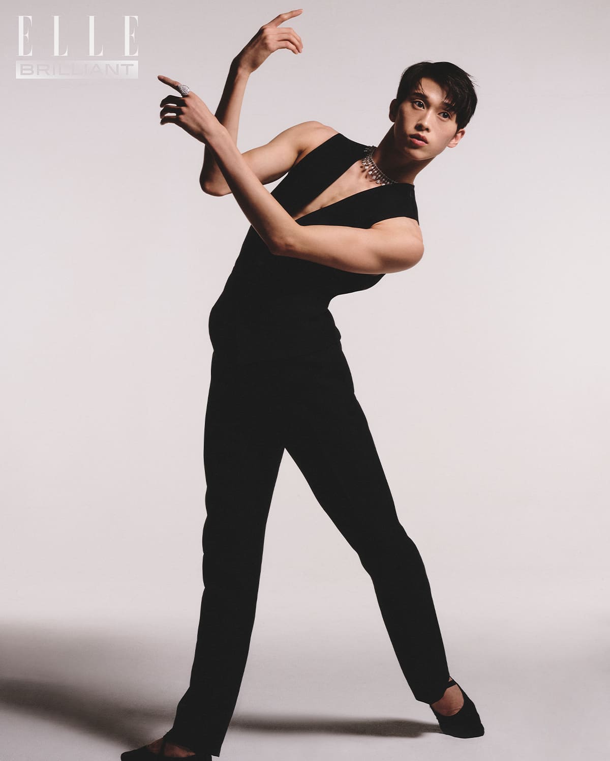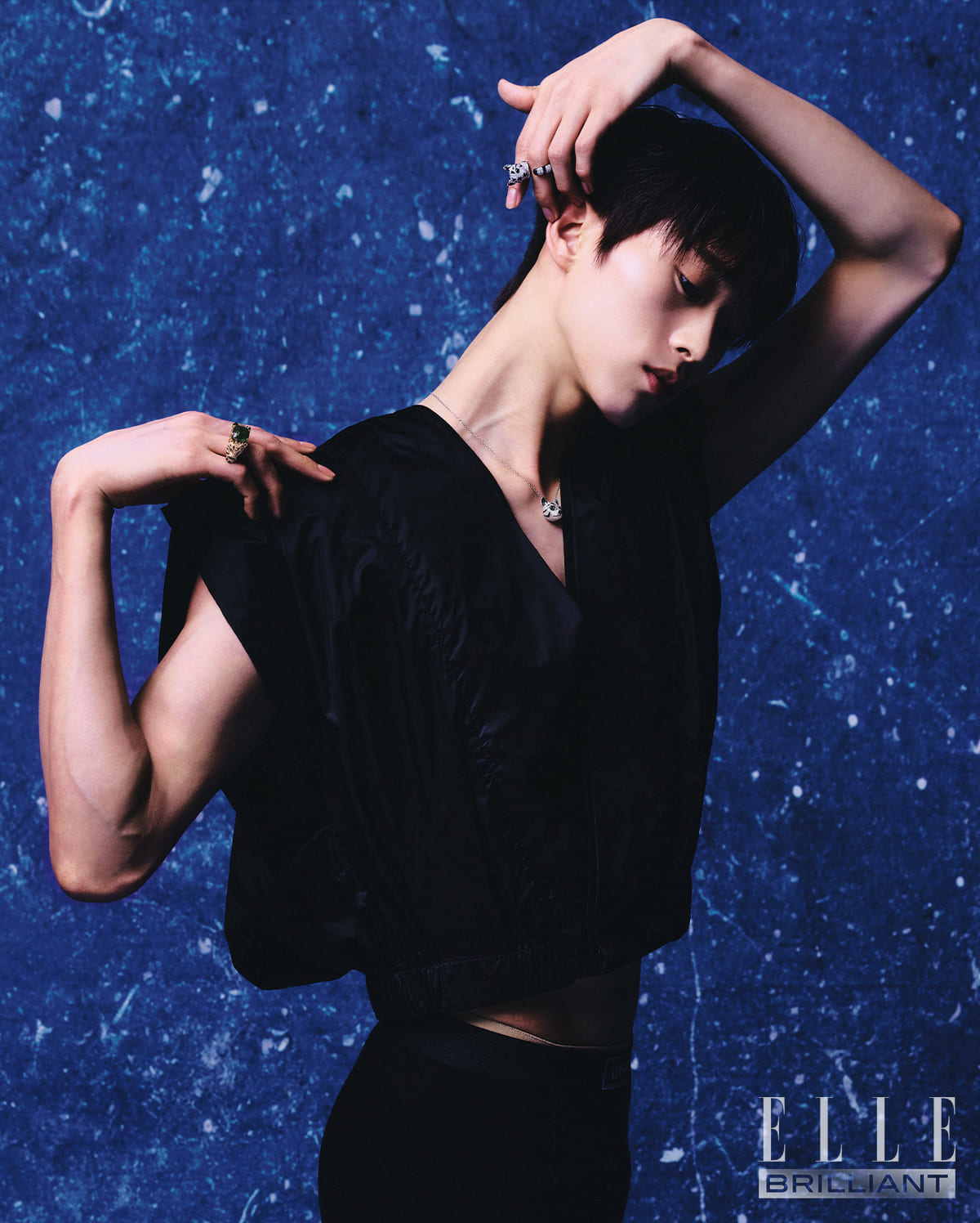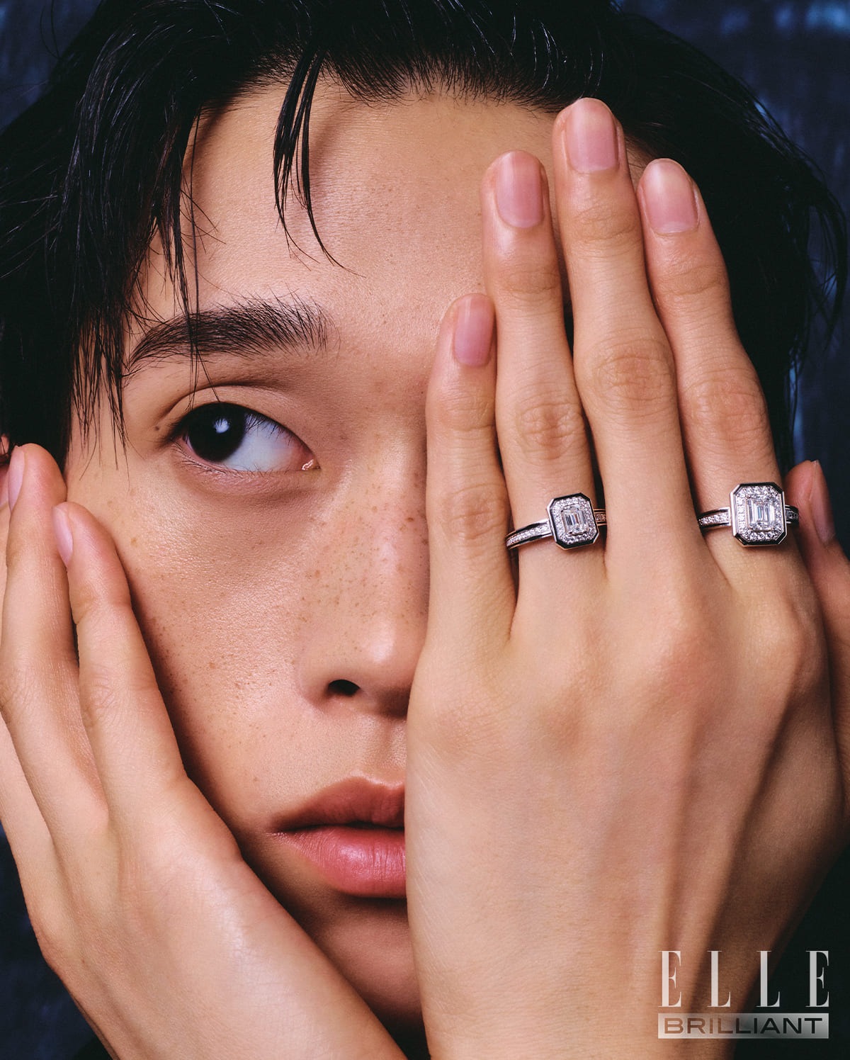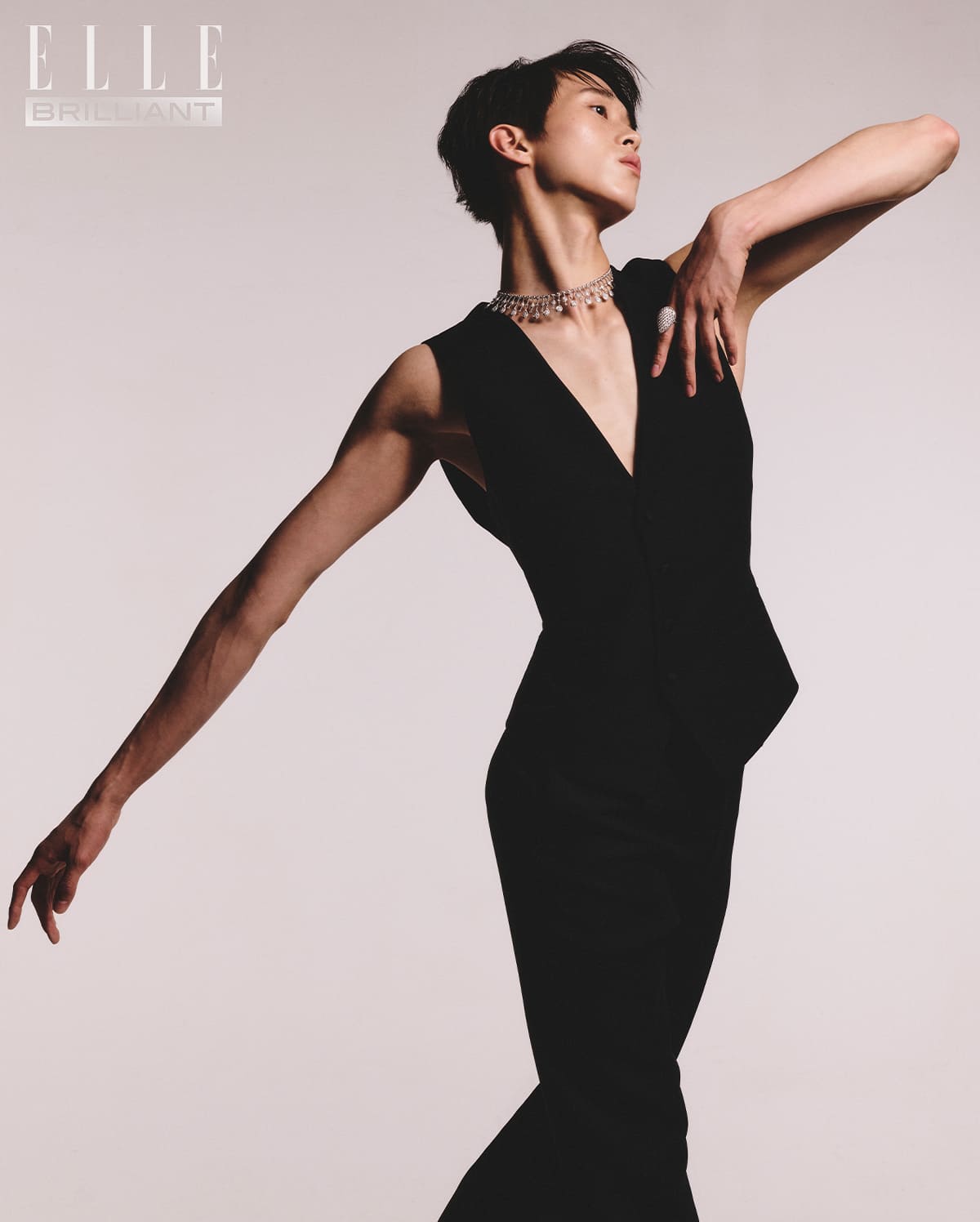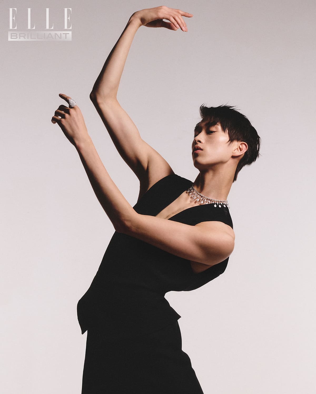 <엘르>의 워치&주얼리 매거진 <엘르 브릴리언트>와 진행한 이번 화보는 ‘New Wave’라는 주제로 하이 주얼리 메종 부쉐론과 함께했다. 부쉐론의 주얼리를 착용한 전민철은 백조와 흑조 사이를 오가는 몸짓과 표정으로 한 편의 공연과도 같은 매혹적인 모습을 선보이며 감탄을 자아냈다. 첫 단독 화보라는 게 믿어지지 않을 만큼 다채로운 매력을 보여주어 시선을 사로잡았다.