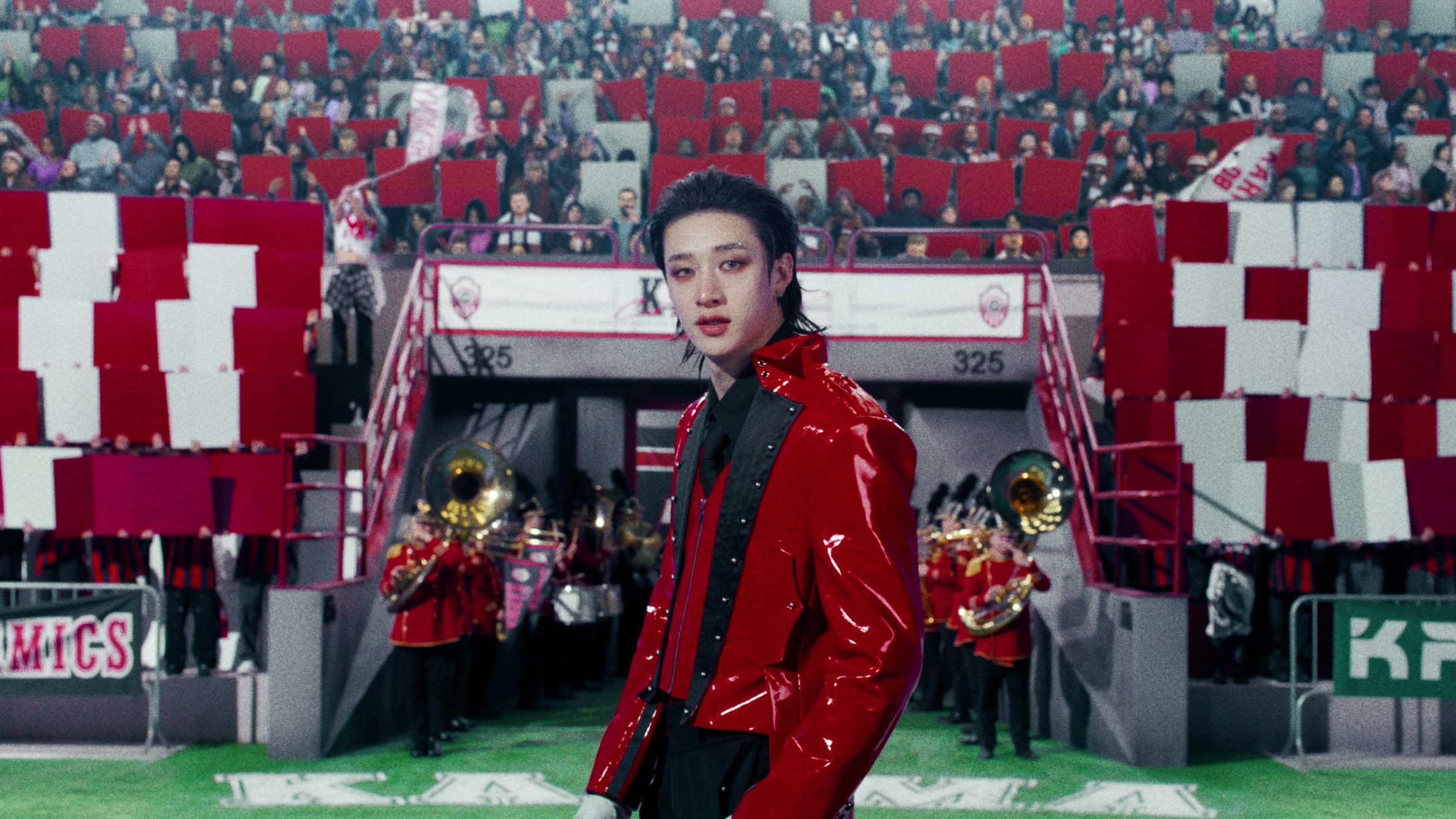 트로피가 벽면을 수놓은 고풍스러운 서재에 자리한 필릭스, 찬란하게 빛나는 금메달을 목에 건 아이엔, 화려한 재킷을 차려입고 링 위에 오른 창빈, 마칭밴드와 서포터즈 사이 등장한 방찬, 트레일러에서 터뜨린 공을 들고 나타난 한, 레이싱 재킷을 입고 여유로운 표정을 지어 보이는 리노, 맹렬한 질주를 펼치는 현진 그리고 하키 헬멧을 쓴 승민까지 여덟 멤버가 저마다의 특색 있는 캐릭터로 분해 향후 펼쳐질 스토리를 향한 호기심을 자극한다.