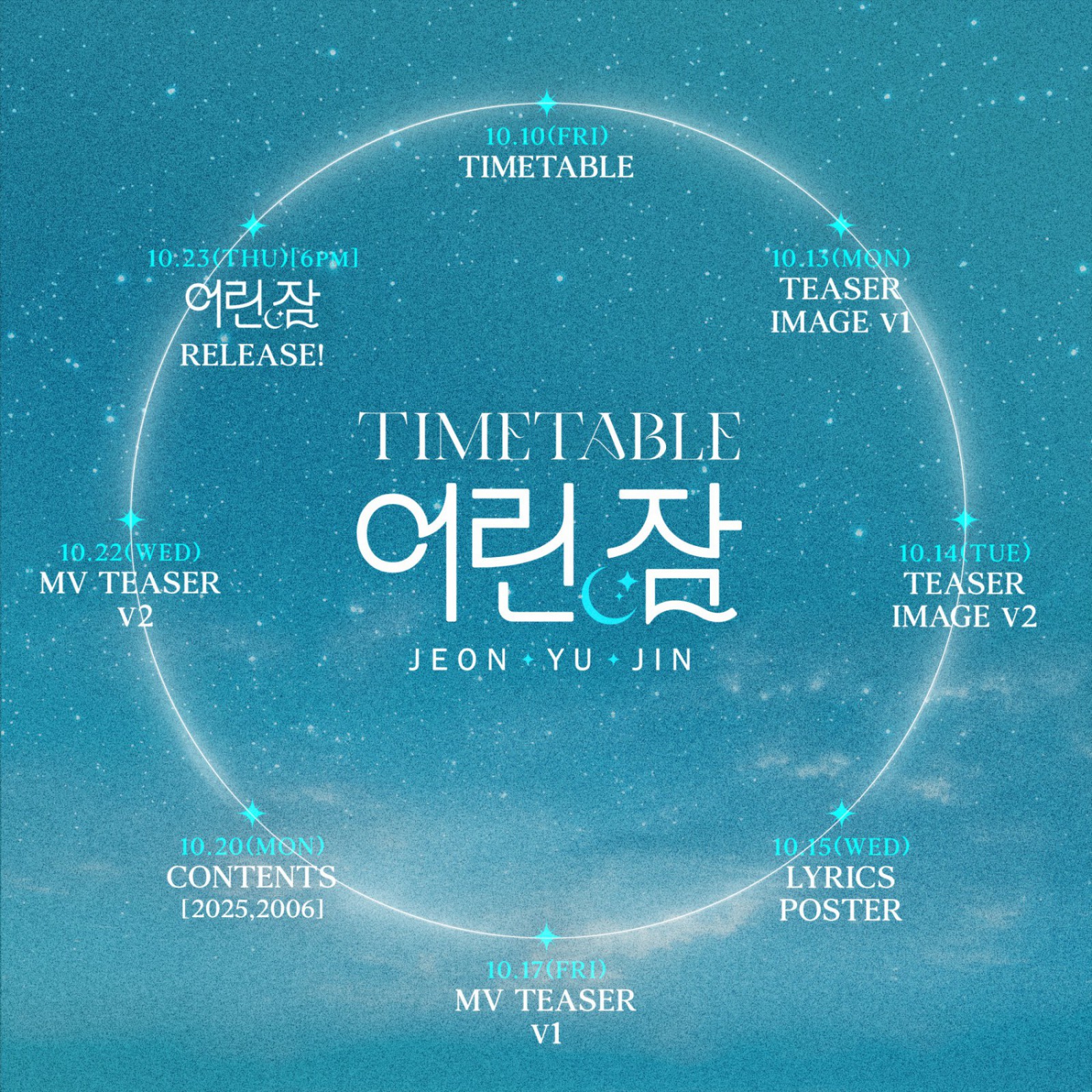 공개된 타임테이블 이미지는 어슴푸레한 하늘과 구름, 반짝이는 별빛을 배경으로 각 콘텐츠를 둥근 원 모양으로 표현했으며, 제목인 ‘어린 잠’의 따뜻하고 서정적인 분위기를 시각적으로 담아냈다.