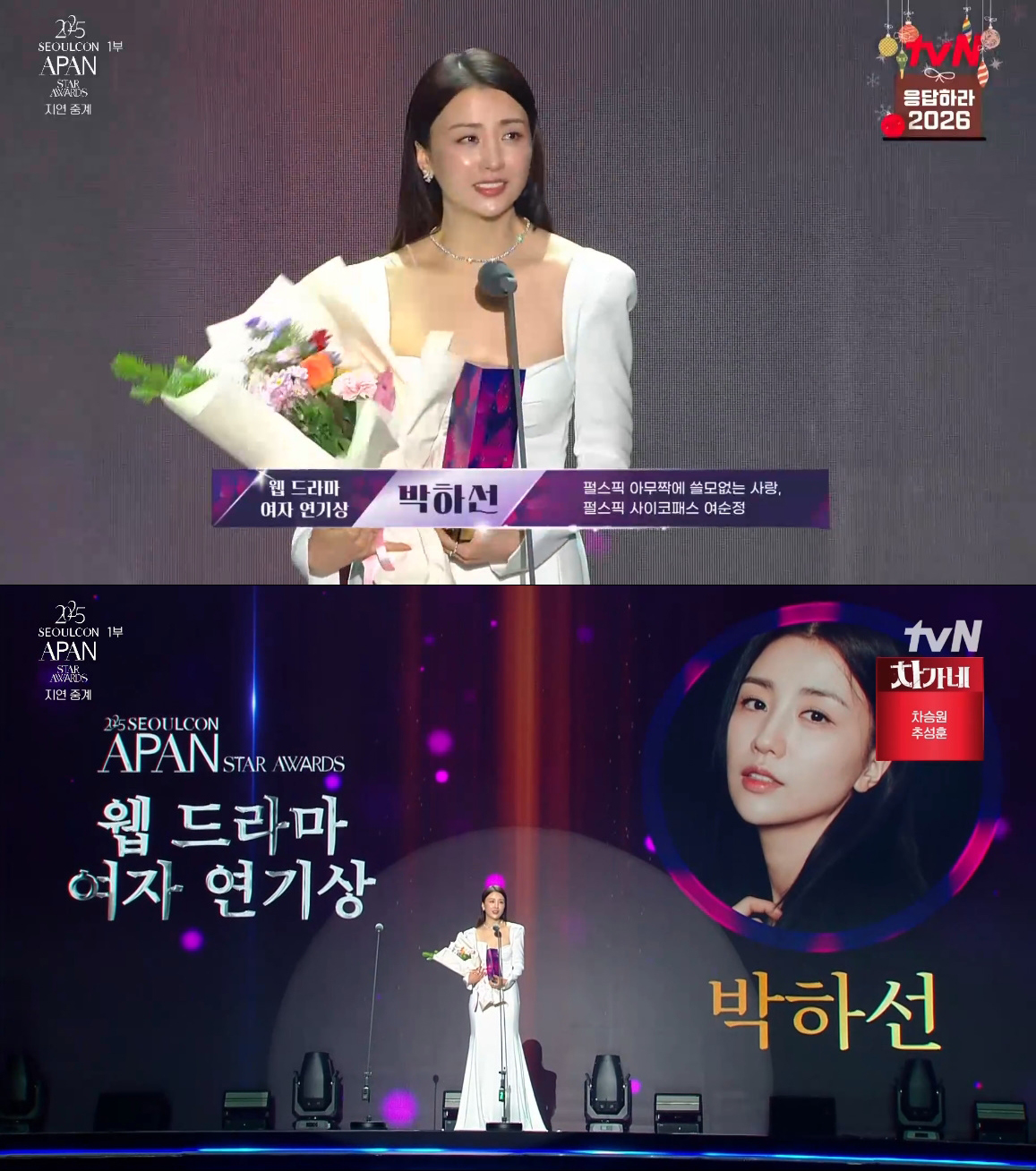 배우 박하선이 ‘2025 서울콘 에이판 스타 어워즈’에서 웹 드라마 여자 연기상을 수상했다.