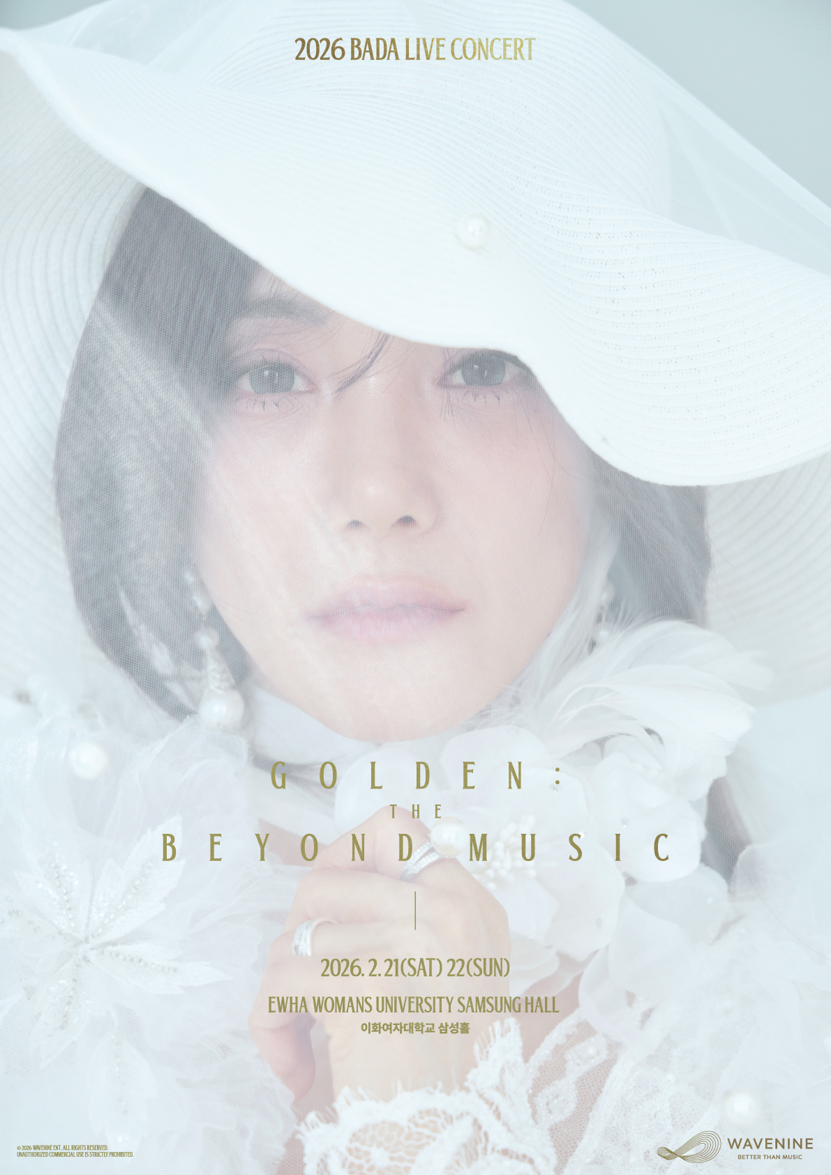 대한민국 대표 보컬리스트 바다(S.E.S.)가 2026년을 여는 첫 단독 라이브 콘서트 ‘2026 BADA LIVE CONCERT [Golden: Beyond the Music]’을 오는 2월 21일(토)과 22일(일) 양일간 이화여자대학교 삼성홀에서 개최한다.