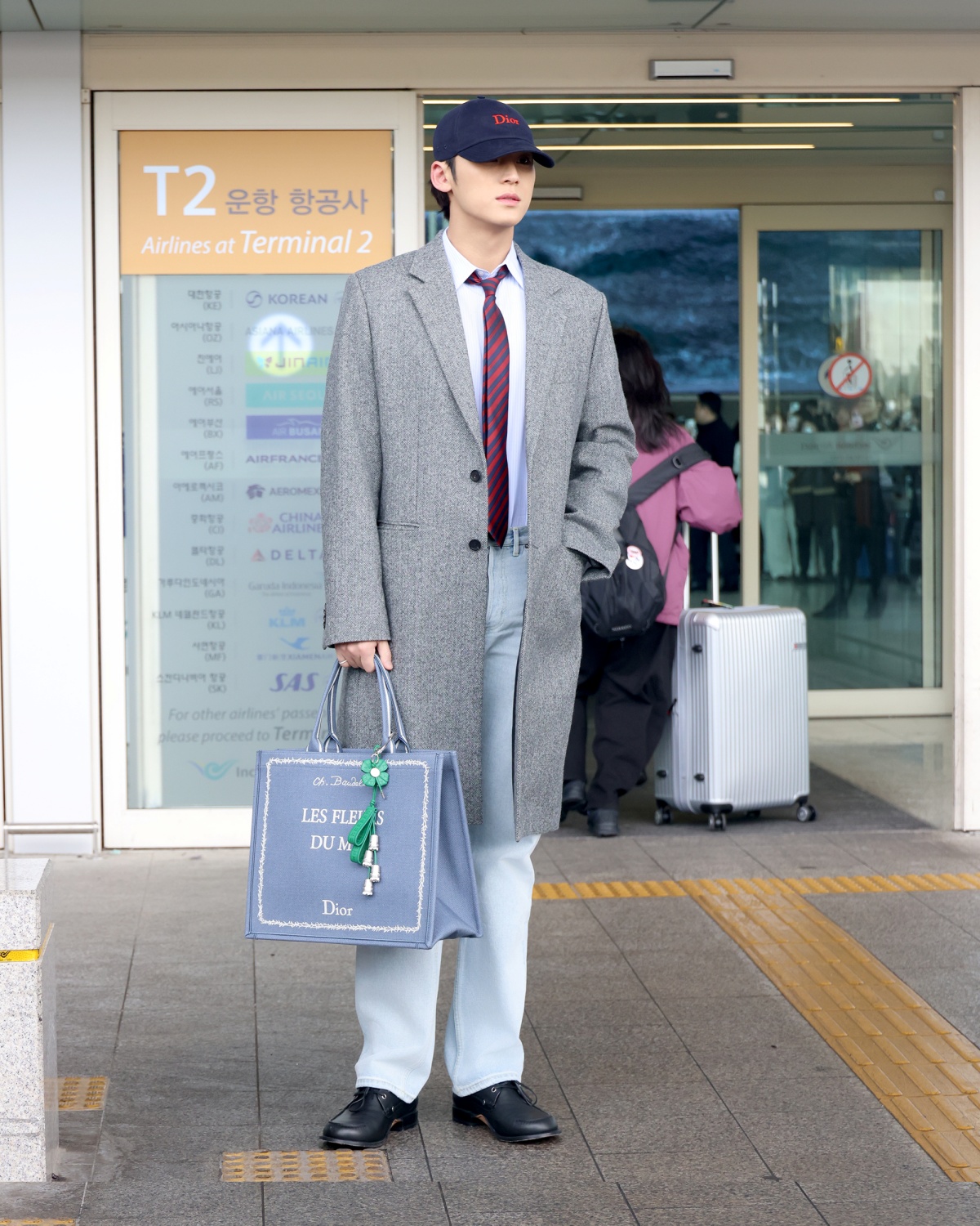 민규의 공항패션을 완성시켜 준 룩은 디올(Dior) 제품으로 알려졌다. 그레이 컬러의 헤링본 코트와 셔츠와 타이, 부츠컷 팬츠로 차분하면서도 세련된 스타일을 완성했으며, 여기에 Dior 아치 보트 슈즈와 Dior 북 토트 라지 백 그리고 캡 모자를 함께 매치해 전체적인 룩에 완성도 높은 스타일링을 선보였다.